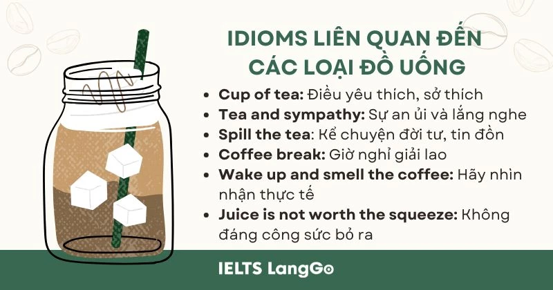 Tiếng Anh có rất nhiều thành ngữ liên quan đến đồ uống mang những ý nghĩa thú vị liên quan đến đồ uống đó, các bạn cùng khám phá nhé!