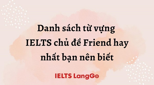 Để giúp các bạn chinh phục chủ đề Friendship trong IELTS, IELTS LangGo đã tổng hợp từ vựng IELTS chủ đề Friends trong bài viết dưới đây, hãy ghi chép lại để học và áp dụng vào bài thi Speaking của mình nhé!