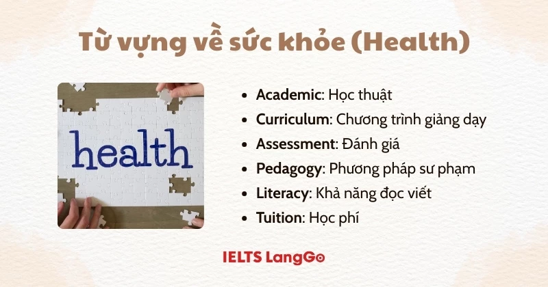 Chủ đề sức khỏe cũng là một trong những từ vựng hay xuất hiện trong IELTS Reading. Hãy cùng tìm hiểu các từ quan trọng sau: