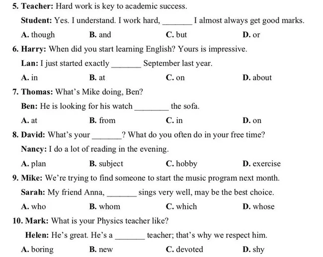 Đề tuyển sinh vào lớp 10 môn tiếng Anh của Sở Giáo dục và Đào tạo TP.HCM tập trung đánh giá khả năng hiểu và vận dụng kiến thức ngôn ngữ vào ngữ cảnh phù hợp, đặc biệt là các tình huống thực tế cuộc sống.