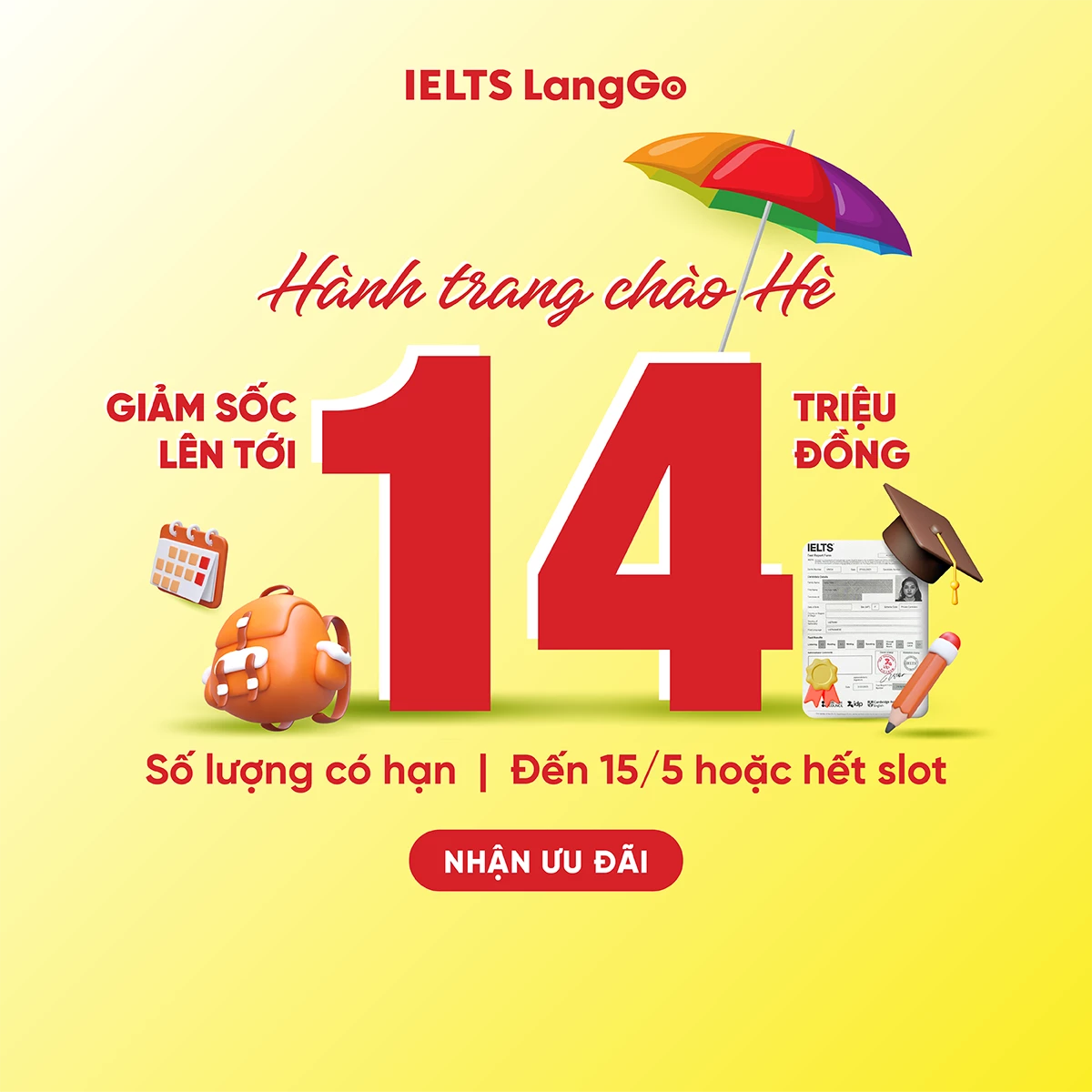 Hoặc nếu bạn đang cần tăng band nhanh trong giai đoạn này thì có thể tham khảo khóa luyện thi IELTS cấp tốc, full 4 kỹ năng và cam kết tăng tối thiểu 1 band chỉ sau 10 buổi. Nếu bạn cần LangGo trợ giúp thì có thể liên hệ với chúng mình nhé