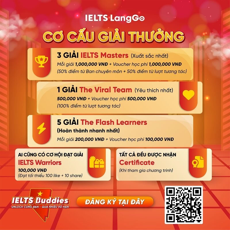 Cơ cấu giải thưởng hấp dẫn khi tham dự cuộc thi IELTS Buddies