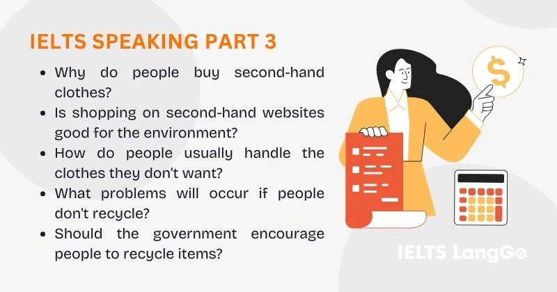 Với đề bài Describe a website that sells second-hand items, các câu hỏi cho Part 3 thường cũng sẽ liên quan đến chủ đề Buying (Mua sắm).