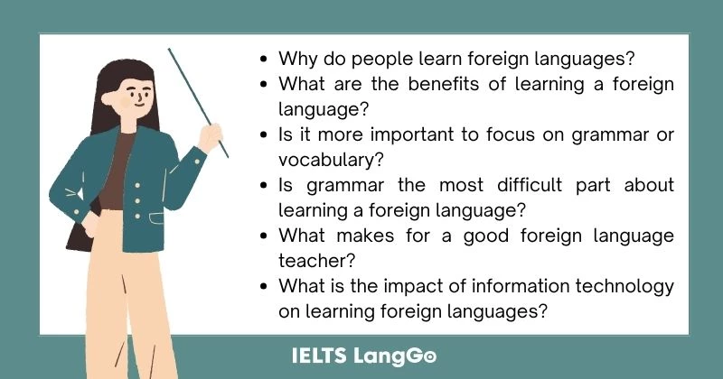 Với đề bài Describe an English lesson that you enjoyed, các câu hỏi cho Part 3 thường cũng sẽ liên quan đến chủ đề Language - một chủ đề khá quen thuộc với đa số chúng ta.