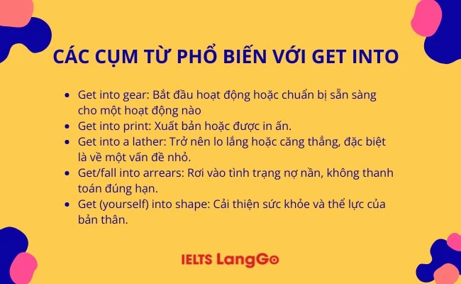 Get into có nhiều ý nghĩa như đi vào, chiến thắng bầu cử hay bắt đầu làm gì đó. Cùng IELTS LangGo tìm hiểu ý nghĩa và cách dùng get into là gì, các từ đồng nghĩa, trái nghĩa, collocation thông dụng với cụm động từ này trong bài viết sau nhé!