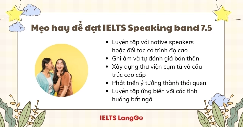 Để chinh phục IELTS 7.5 Speaking, bạn cần nhiều hơn là kiến thức ngôn ngữ thuần túy. Dưới đây là những mẹo thiết thực giúp bạn nâng cao điểm số.