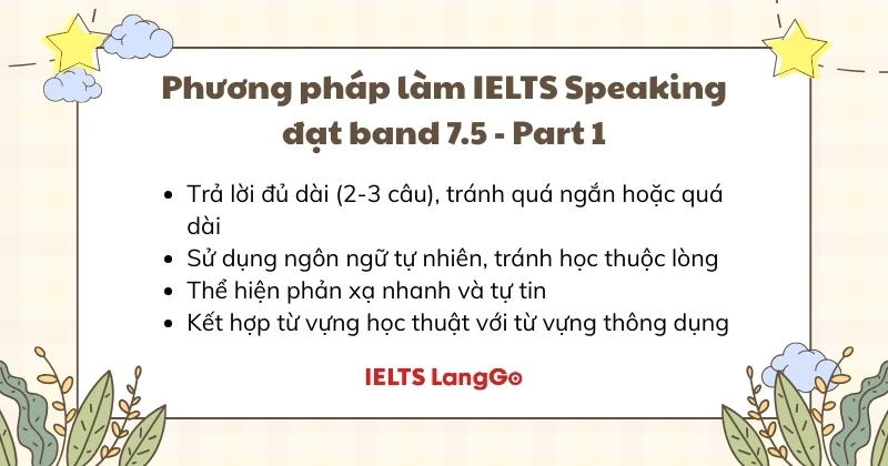 >> Cách trả lời IELTS Speaking Part 1 theo từng dạng câu hỏi (chi tiết)