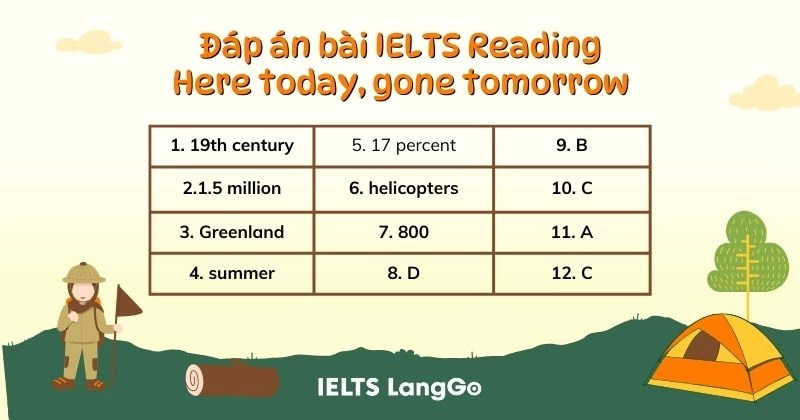 Trên đây là một số lưu ý khi làm 2 dạng bài rất hay gặp trong IELTS Reading, các bạn hãy áp dụng ngay để làm bài đọc 'Here today, gone tomorrow' sau đây nhé!