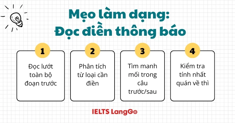 2.1. Mẹo làm dạng: Đọc điền thông báo