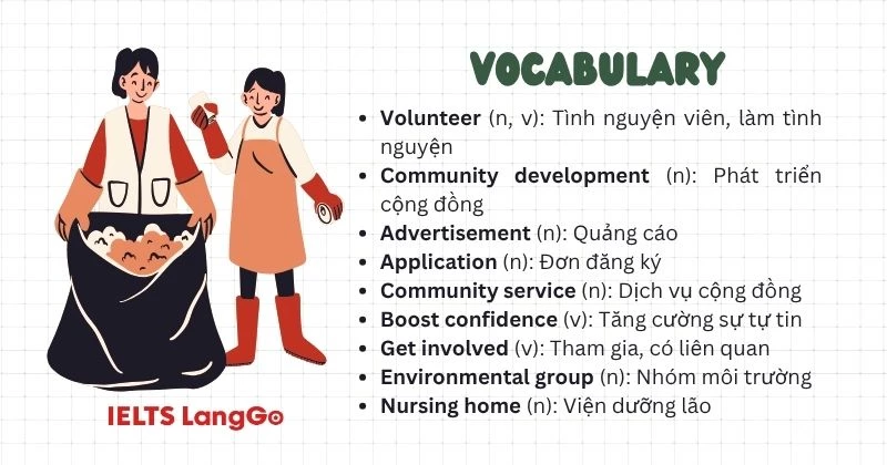 Hội thoại trong phần Getting Started nói về việc tham gia hoạt động tình nguyện tại trung tâm cộng đồng. Qua đó, các bạn học sinh sẽ học được nhiều từ vựng, cụm từ hữu ích và hiểu rõ hơn về cách thức tham gia các hoạt động tình nguyện.