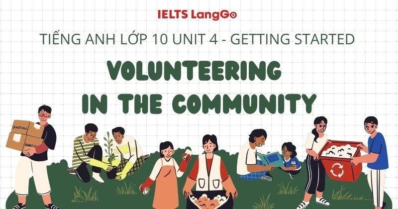 Phần Getting started Unit 4 Tiếng Anh 10 sách Global Success giới thiệu về chủ đề Volunteering in the community - một chủ đề vô cùng ý nghĩa, giúp học sinh hiểu về tinh thần tình nguyện và các hoạt động cộng đồng.