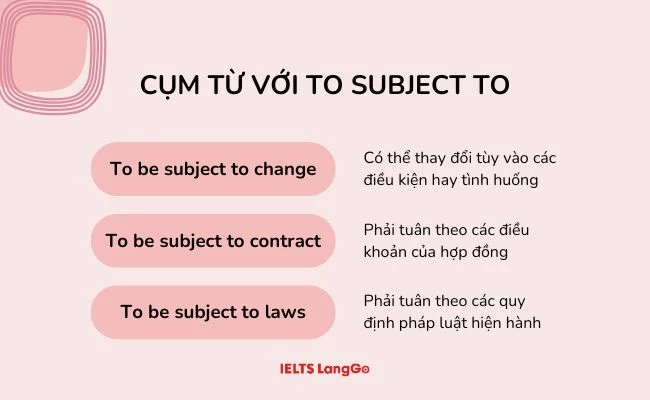 Không chỉ có ý nghĩa khi đứng một mình, To be subject to còn đi kèm với một số cụm từ khác và được sử dụng phổ biến trong giao tiếp hàng ngày: