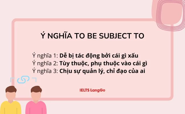 Bài viết sau của IELTS LangGo sẽ giải đáp chi tiết ý nghĩa và cách dùng To be subject to là gì, cũng như bật mí một số cụm từ đồng nghĩa với To be subject to để bạn có thể đa dạng hóa vốn từ vựng của mình.