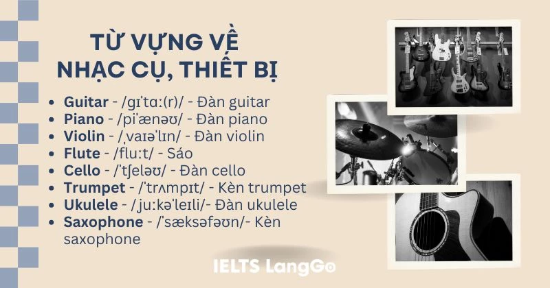 Có rất nhiều loại nhạc cụ khác nhau, chúng ta cùng tìm hiểu tên gọi của các nhạc cụ phổ biến và thiết bị âm nhạc trong tiếng Anh để bạn có thể nói về chúng một cách chính xác.