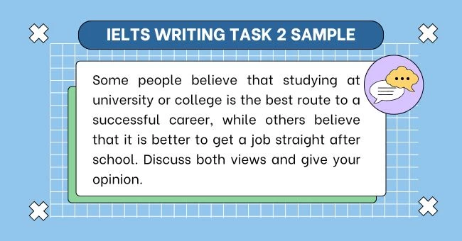 | Đề bài: Some people believe that studying at university or college is the best route to a successful career, while others believe that it is better to get a job straight after school. Discuss both views and give your opinion. |